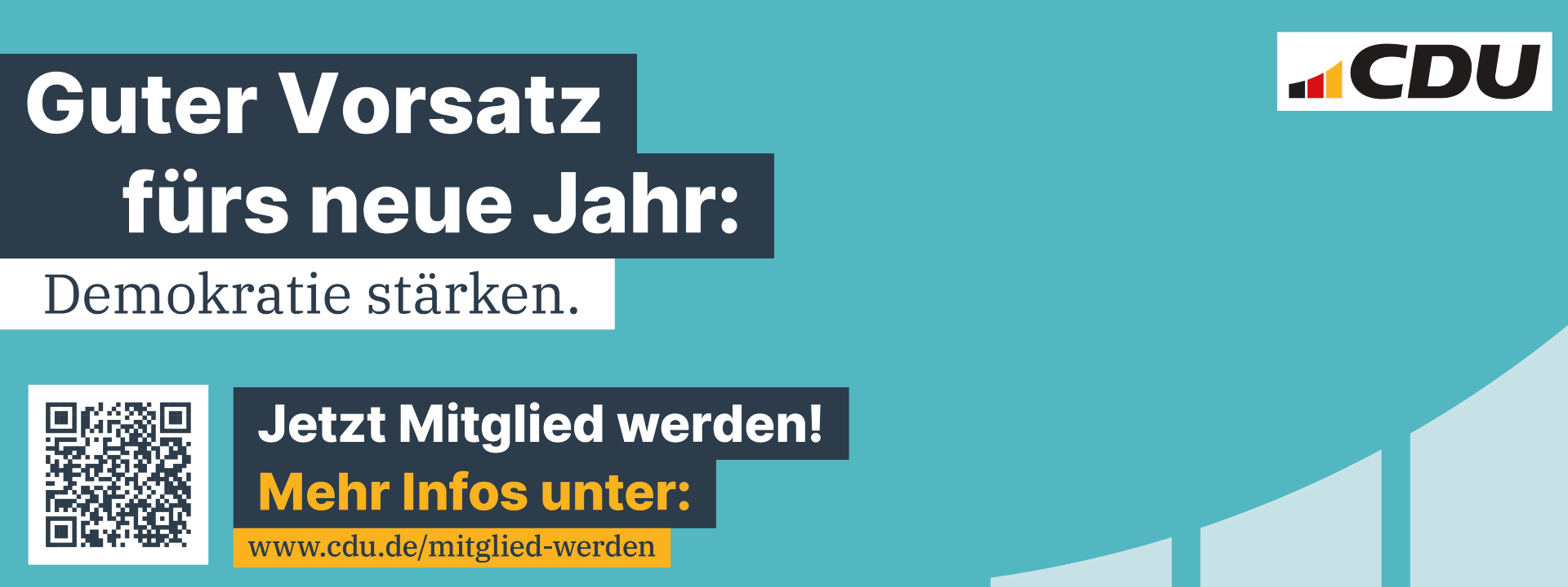 Eine Partei lebt - wie auch jeder Verein - von ihren Mitgliedern: genauso verhält es sich auch bei uns, der Christlich Demokratischen Union! Schnuppern Sie einmal bei uns herein, informieren Sie sich und werden Sie Mitglied! Den Mitgliedsantrag finden Sie hier.