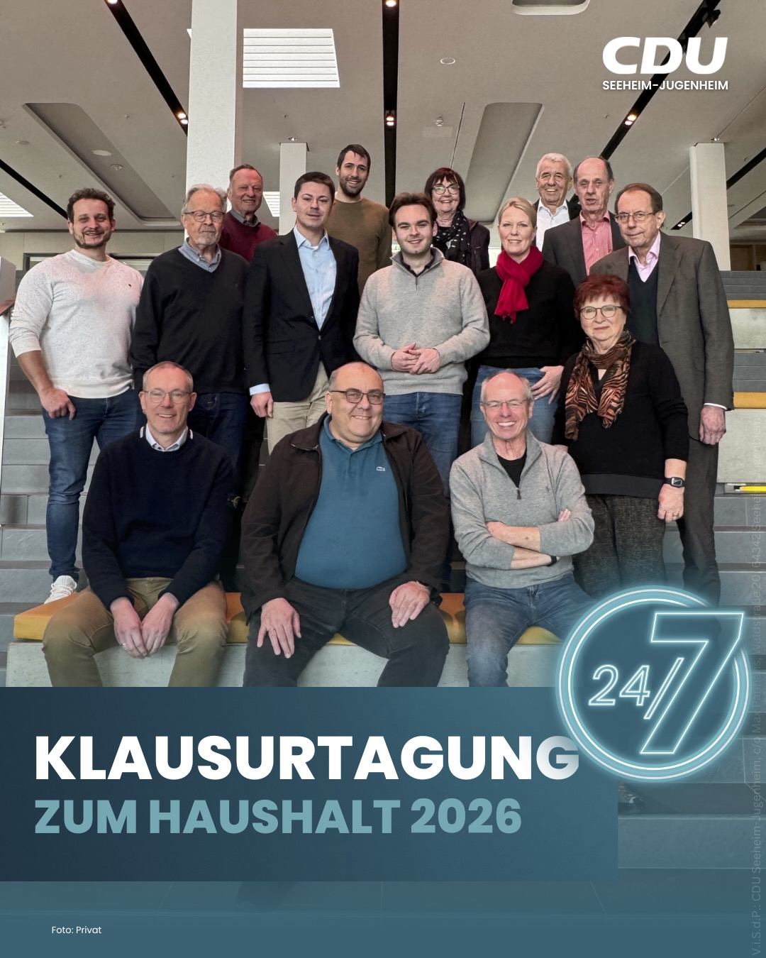 Die CDU-Fraktion der Seeheim-Jugenheimer Gemeindevertretung hat sich im Rahmen einer Klausurtagung intensiv mit dem kommunalen Haushalt für das Jahr 2026 befasst. Mitglieder der Fraktion, des Gemeindevorstands und der Ortsbeiräte kamen dazu im Lufthansazentrum einen ganzen Tag lang zusammen. Ziel der Beratungen war es, frühzeitig Schwerpunkte zu identifizieren und eine solide Informationsgrundlage für die anstehenden Haushaltsberatungen in den gemeindlichen Gremien zu schaffen.