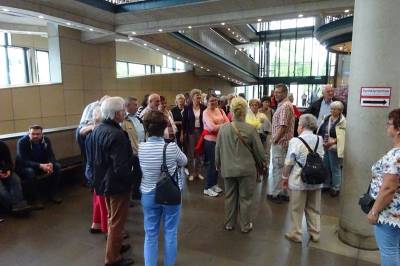 Die Teilnehmer des Ausfluges des CDU-Kreisverbandes vor dem Plenarsaal „altes Wasserwerk“.Als ersten Programmpunkt wurde das „Haus der Geschichte der Bundesrepublik Deutschland“ besucht. Vom Ende des Zweiten Weltkrieges bis in die unmittelbare Gegenwart haben die Teilnehmer anhand von 7.000 Originalobjekten, anschaulich in Szene gesetzt, mit einer Führung eine Reise durch die neuere deutsche Geschichte unternommen. In dem chronologisch aufgebauten Ausstellungsrundgang wurde Zeitgeschichte anschaulich und erlebnisorientiert präsentiert. Zahlreiche Exponate, Dokumente, Fotos und Filme weckten Erinnerungen und veranschaulichten historische, politische und internationale Zusammenhänge.