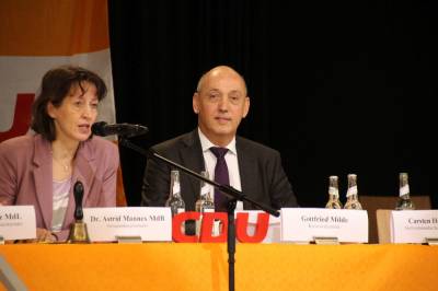 „Ich freue mich sehr über das große Vertrauen unserer Delegierten und Mitglieder und bedanke mich für das tolle Ergebnis“, erklärte der 56-jährige Milde. „Mit einem lachenden und einem weinenden Auge blicken wir auf die Landtagswahl am 28. Oktober 2018 zurück. Die CDU ist weiterhin die treibende Kraft in einer schwarz-grünen Landesregierung, stellt mit Volker Bouffier MdL erneut den Ministerpräsidenten und unser Freund Manfred Pentz konnte seinen Wahlkreis deutlich gewinnen. Der Verlust des Südwahlkreises von Karin Wolff und auch die sehr unglückliche Niederlage von Lutz Köhler im Westwahlkreis schmerzen uns immer noch sehr.“ Der CDU-Kreisverband sei kampferprobt und kampagnenfähig, lobte Milde die vielen Wahlkämpferinnen und Wahlkämpfer an der Basis.