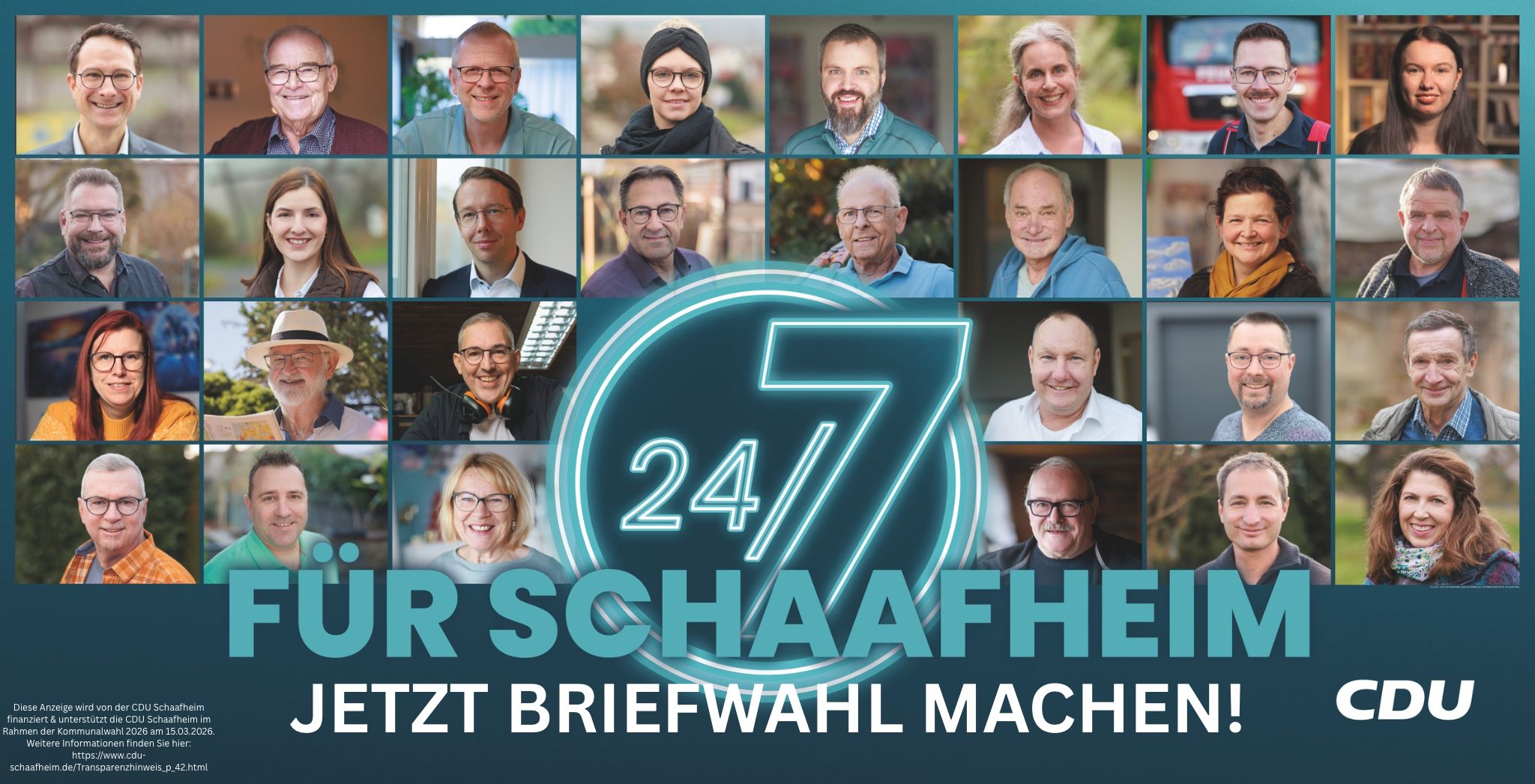 Mit Blick auf die Kommunalwahl am 15. März 2026 stellt die CDU Schaafheim ihre Kandidatinnen und Kandidaten für die Ortsbeiräte in Schlierbach, Radheim und Mosbach sowie für den Kreistag des Landkreises Darmstadt-Dieburg vor. Die CDU setzt dabei bewusst auf Menschen, die in den jeweiligen Ortsteilen fest verwurzelt sind und ihre Heimat und die Menschen dort kennen. Unter dem Leitgedanken „24/7 für Schaafheim“ stehen sie für Verlässlichkeit, Sachverstand und eine verantwortungsvolle Politik.