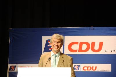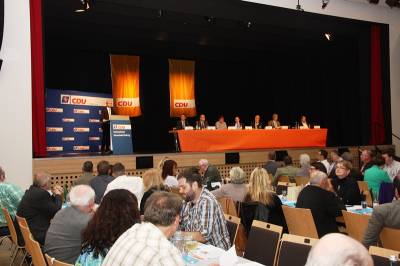 Der CDU-Kreisvorsitzende Gottfried Milde ist hochzufrieden: „Dr. Werner Thomas ist der ideale Mann für das Landratsamt! Das spiegelt sich auch in der Aufbruchsstimmung wieder, die hier im Saal der Römerhalle herrscht!“